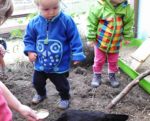 Täglicher Kontakt zur Natur gehört zu unserem Kindergartenalltag. Ein weiterer Schwerpunkt unserer Arbeit ist die Förderung von Sprachvermögen und Sprachverständnis der Kinder.