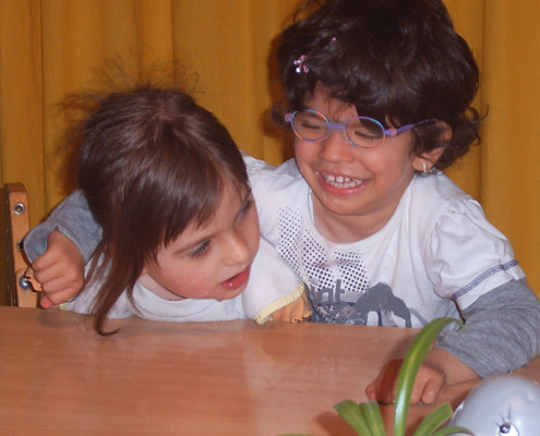 Den pädagogischen Schwerpunkt bildet das gemeinsame Spielen und Lernen von Kindern mit und ohne Behinderung. „Hilf mir, es selbst zu tun“ ist unser Leitmotiv und Wegweiser im Umgang mit den Kindern. Miteinander Spaß haben, voneinander lernen und füreinander da sein – diese Grundhaltung prägt den Kindergartenalltag.